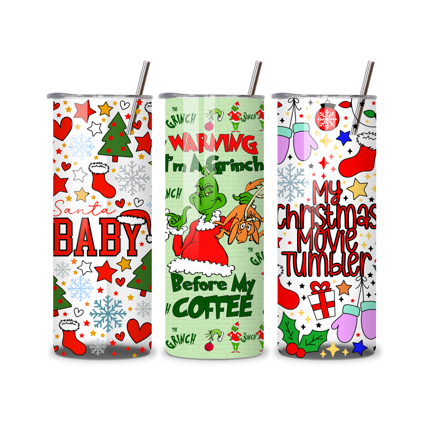 20oz Stainless Steel Tumbler – With Lid & Straw - Grinch & cindyloo