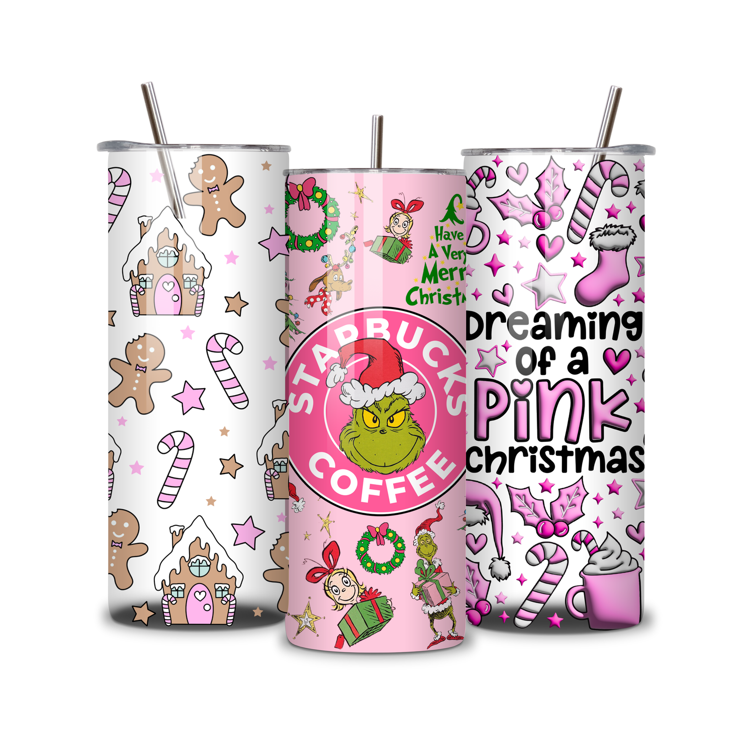 20oz Stainless Steel Tumbler – With Lid & Straw - Dreaming of a pink xmas