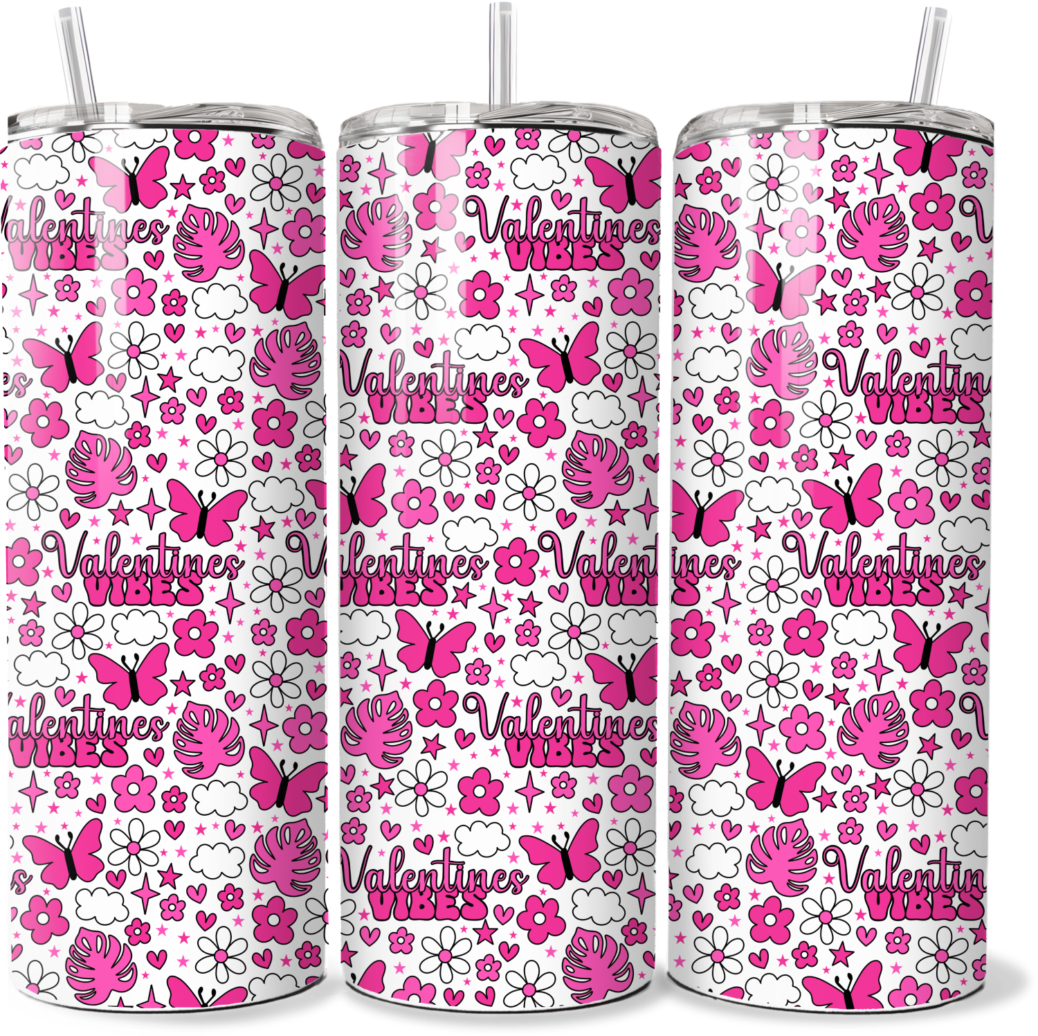 20oz Stainless Steel Tumbler – With Lid & Straw - Valentines Vibes
