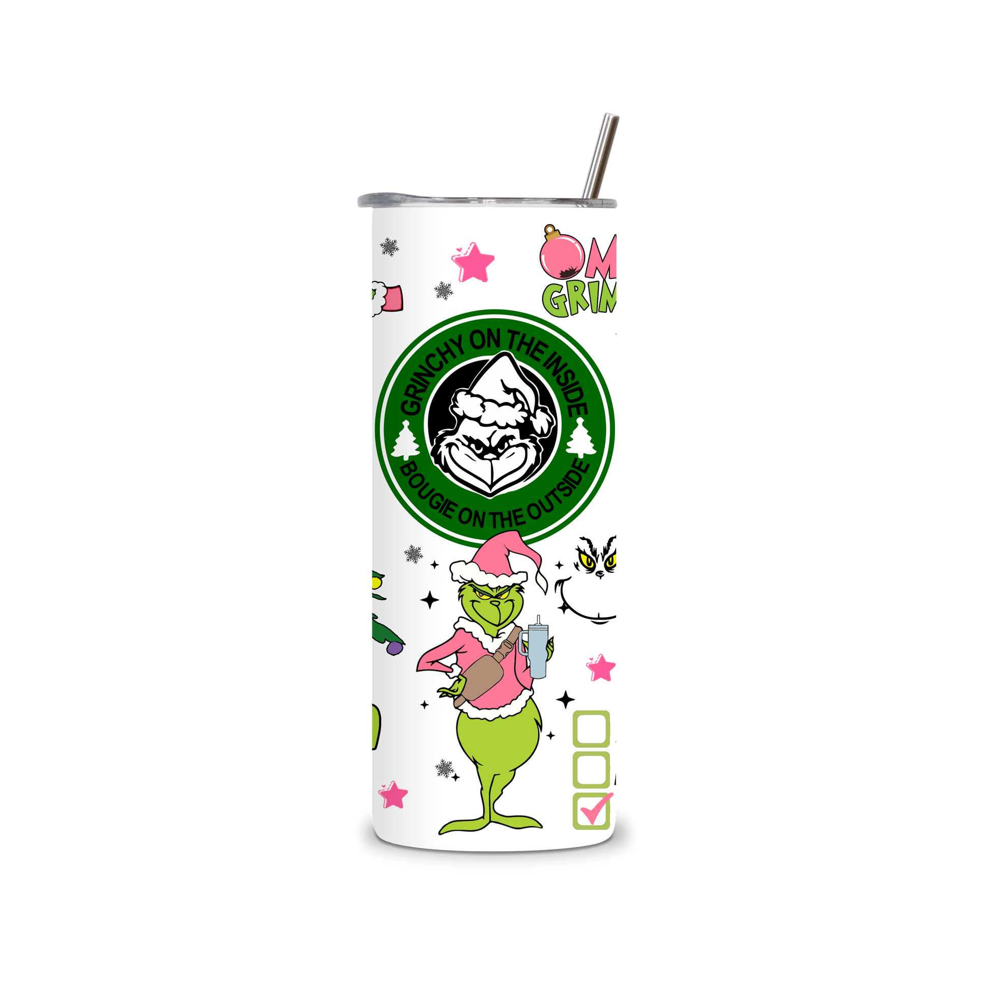 20oz Stainless Steel Tumbler – With Lid & Straw Grinch squad
