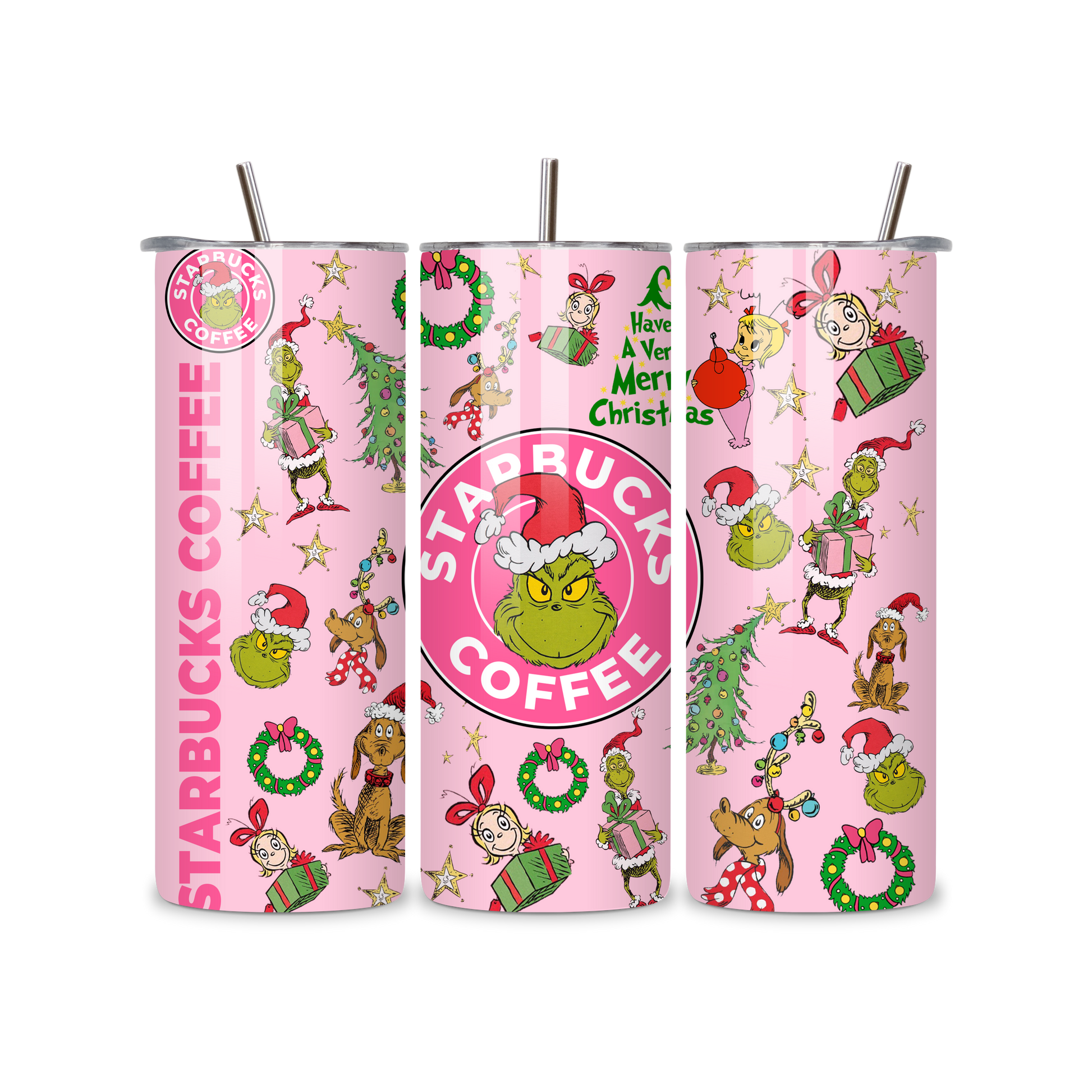 20oz Stainless Steel Tumbler – With Lid & Straw - Starbucks coffee grinch pink